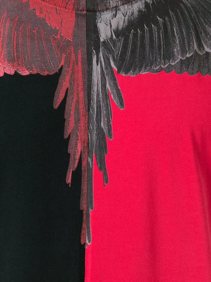 Caption: Striking Red Wings Design Black Shirt By Marcelo Burlon Wallpaper -