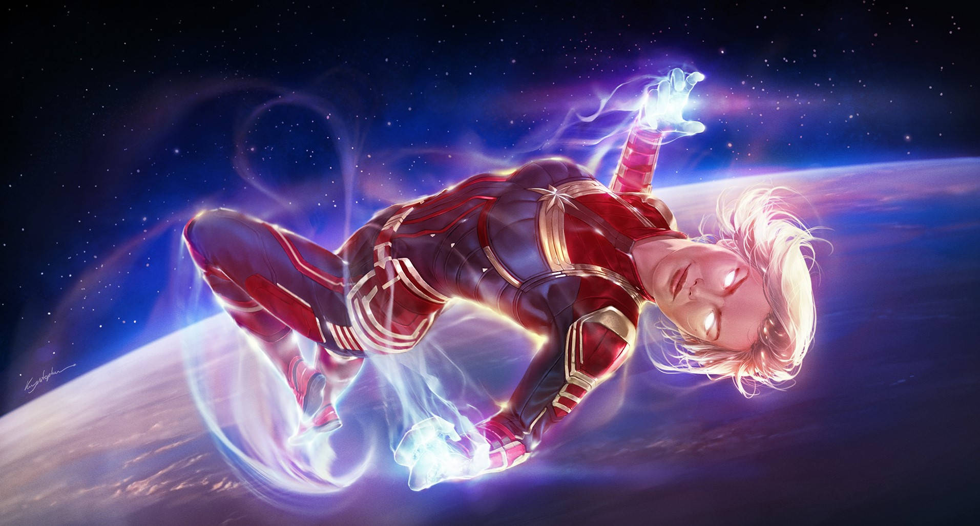 "captain Marvel Flying Through Cyberspace" Wallpaper -