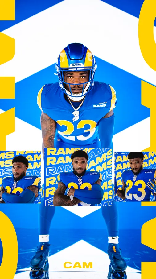 A Group Of Rams Players In Blue And Yellow Wallpaper -