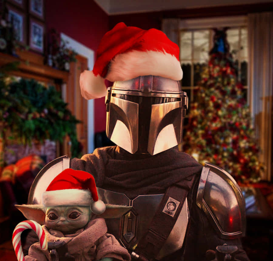 Mandalorian And Baby Yoda Christmas Wallpaper -