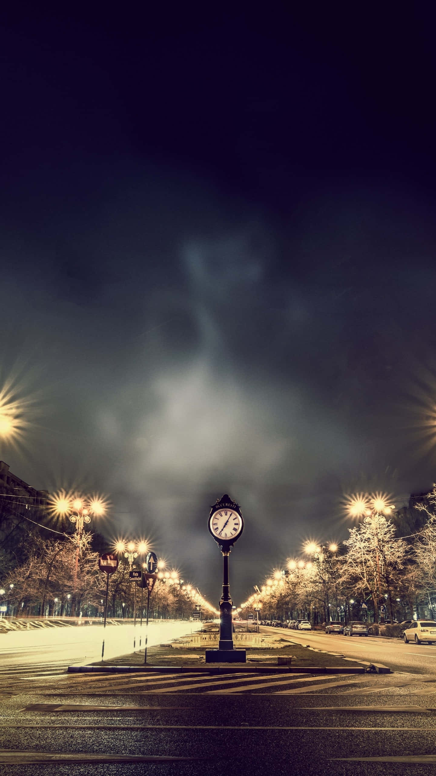 Midnight Clock Street Lights Wallpaper