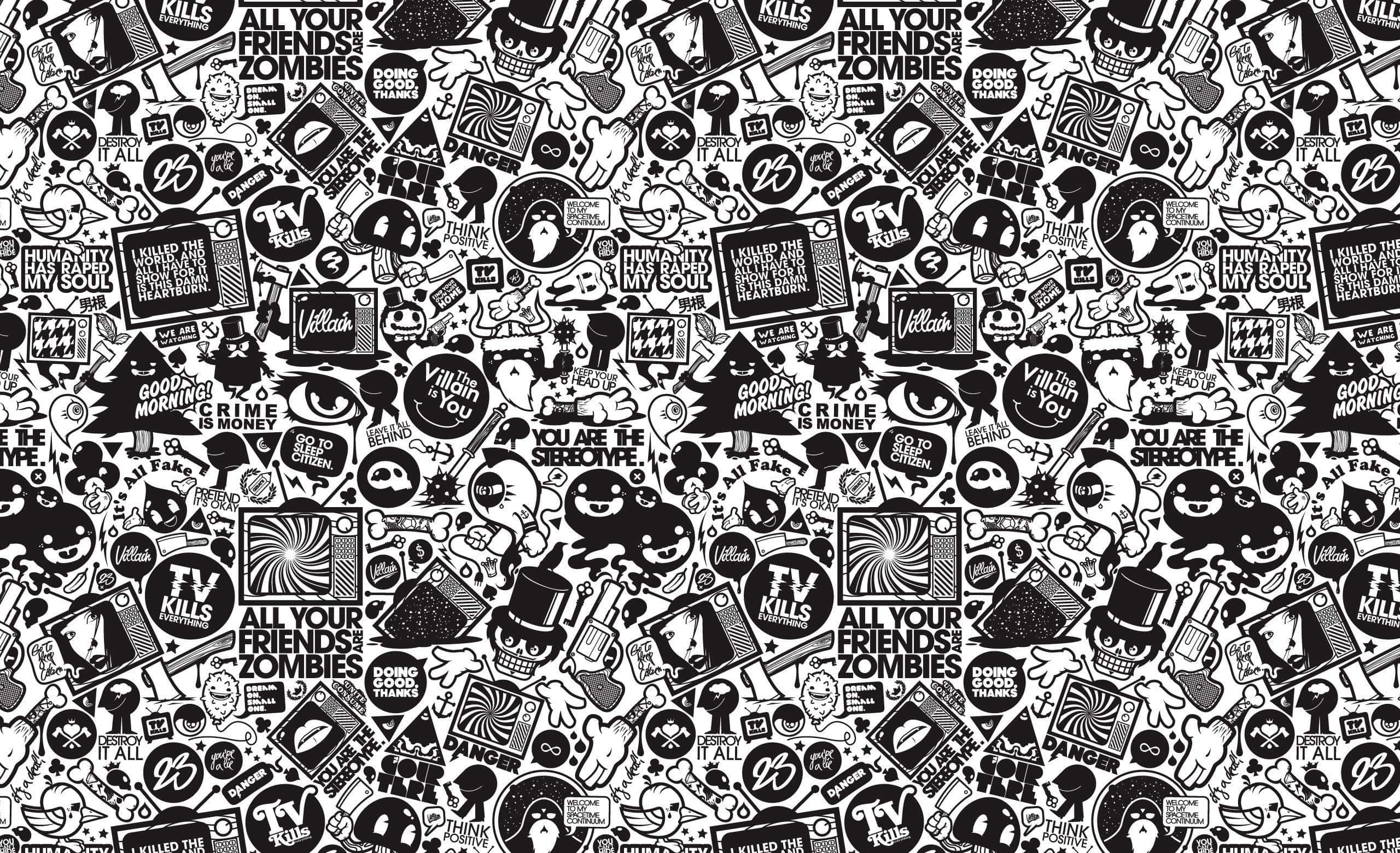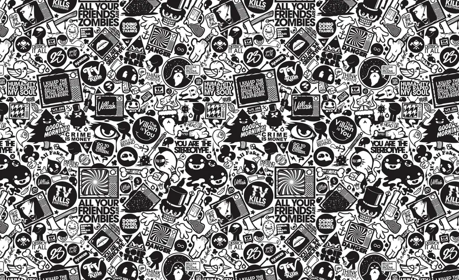 Monochrome Pop Art Collage Wallpaper -