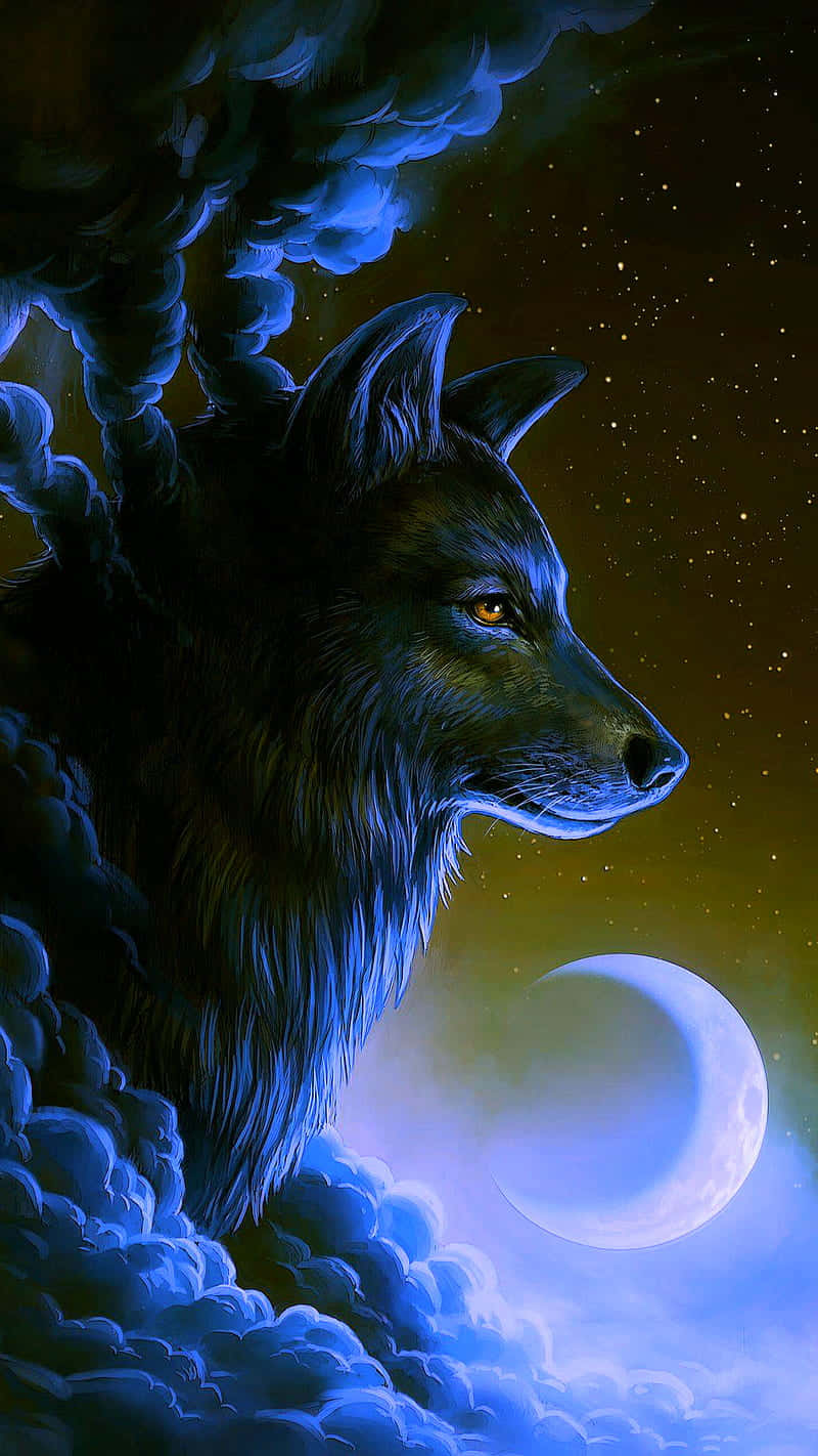 Cosmic Wolf Crescent Moon Wallpaper