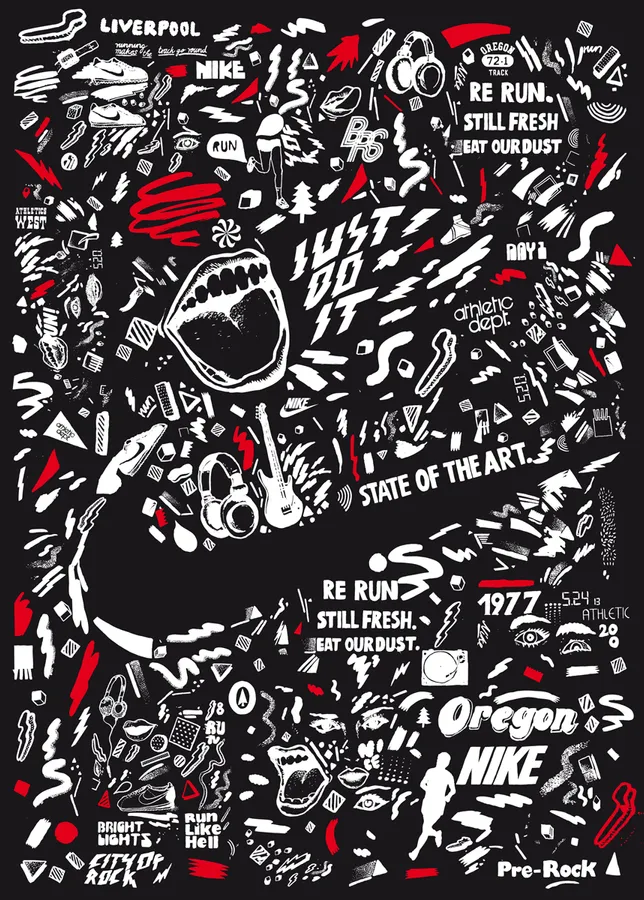 Nike Graffiti Red Black Doodles Wallpaper -