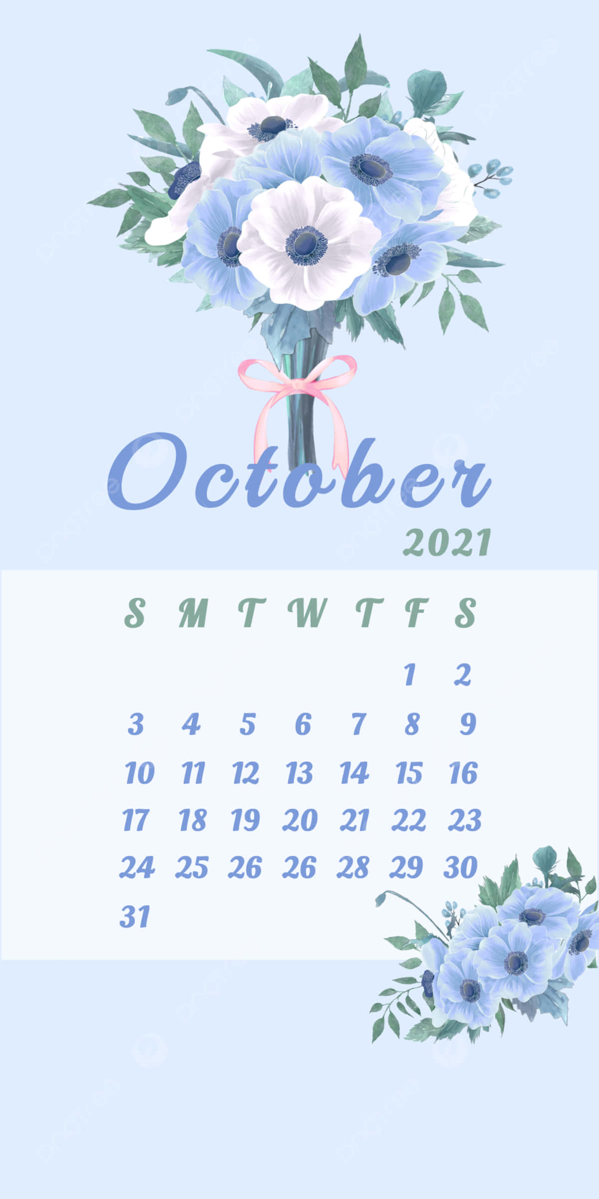 Related October 2020 Calendar With Blue Flowers Wallpapers