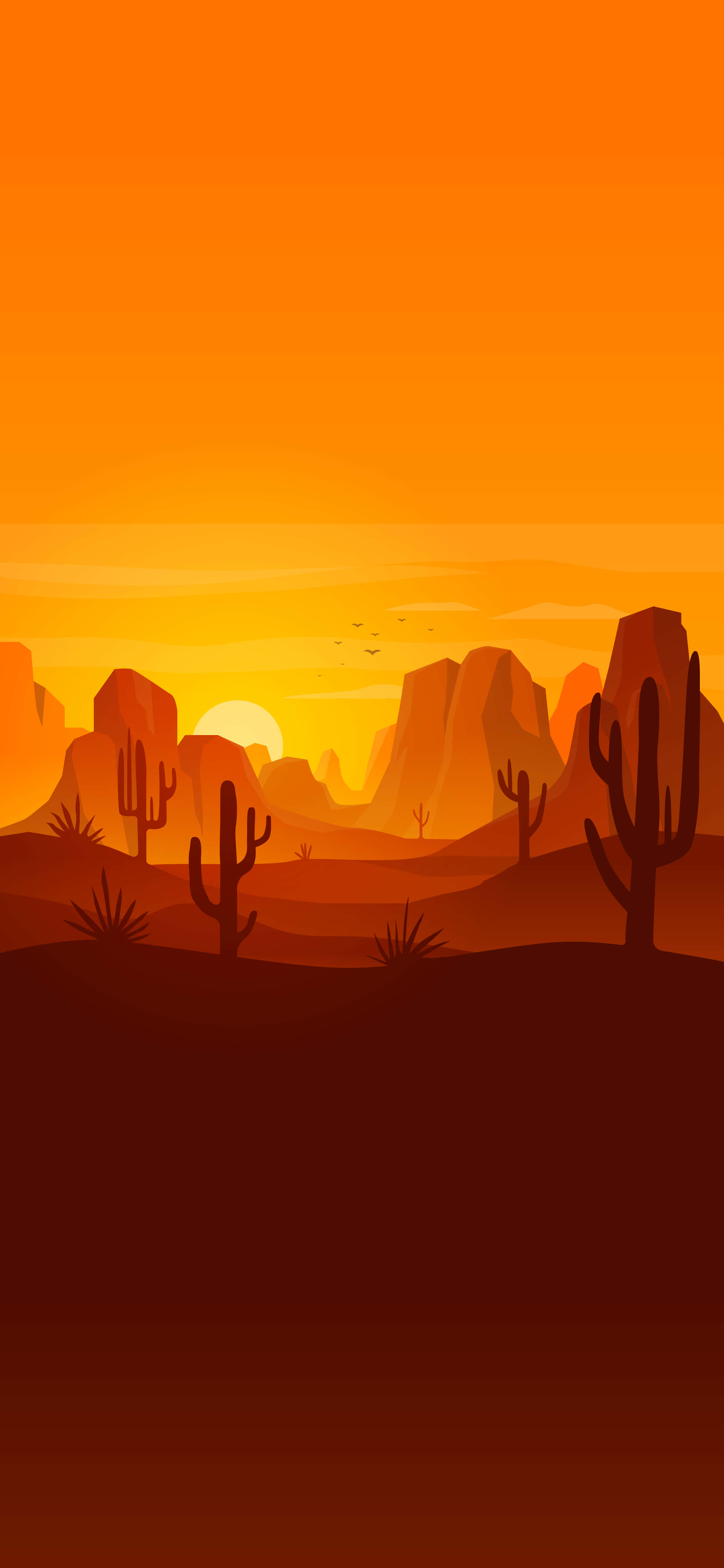 Vector Desert Landscape Orange Aesthetic Phone Wallpaper -