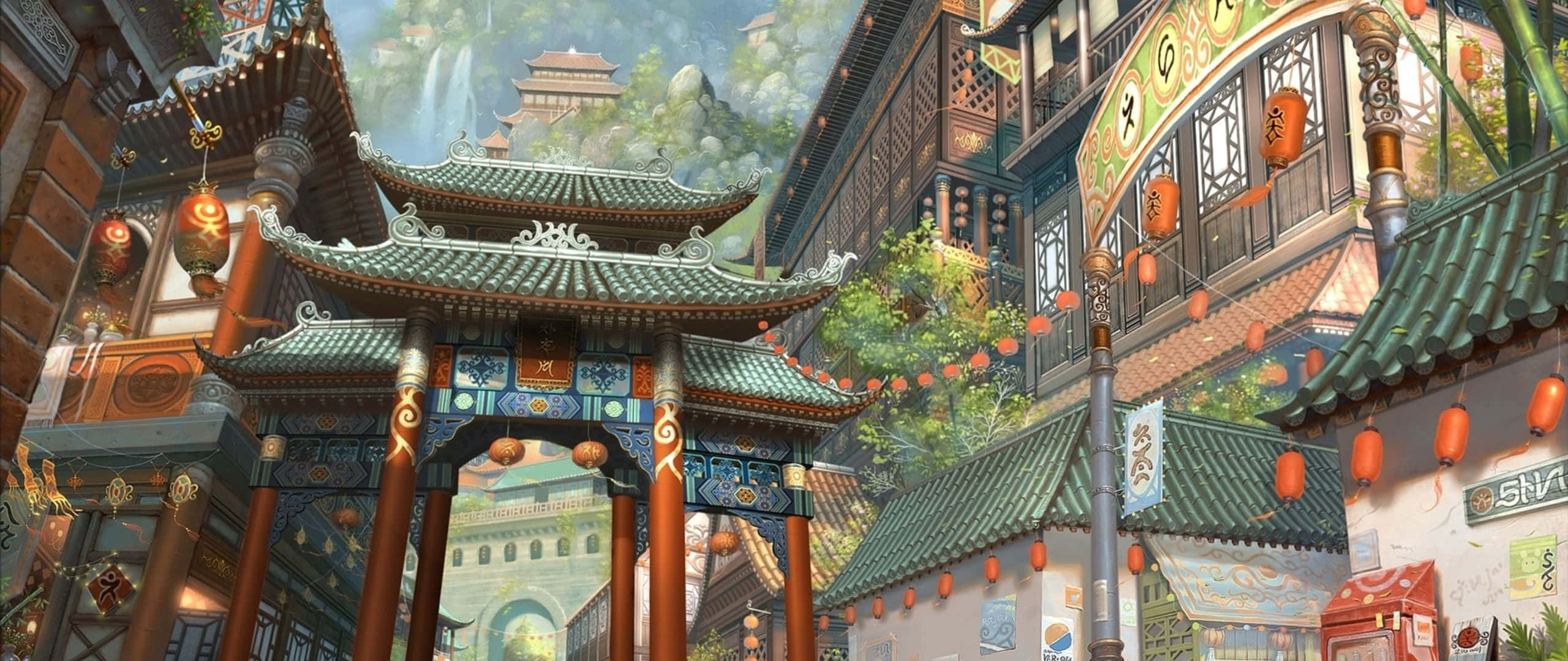 Chinese Village Art 2560x1080 Wallpaper -