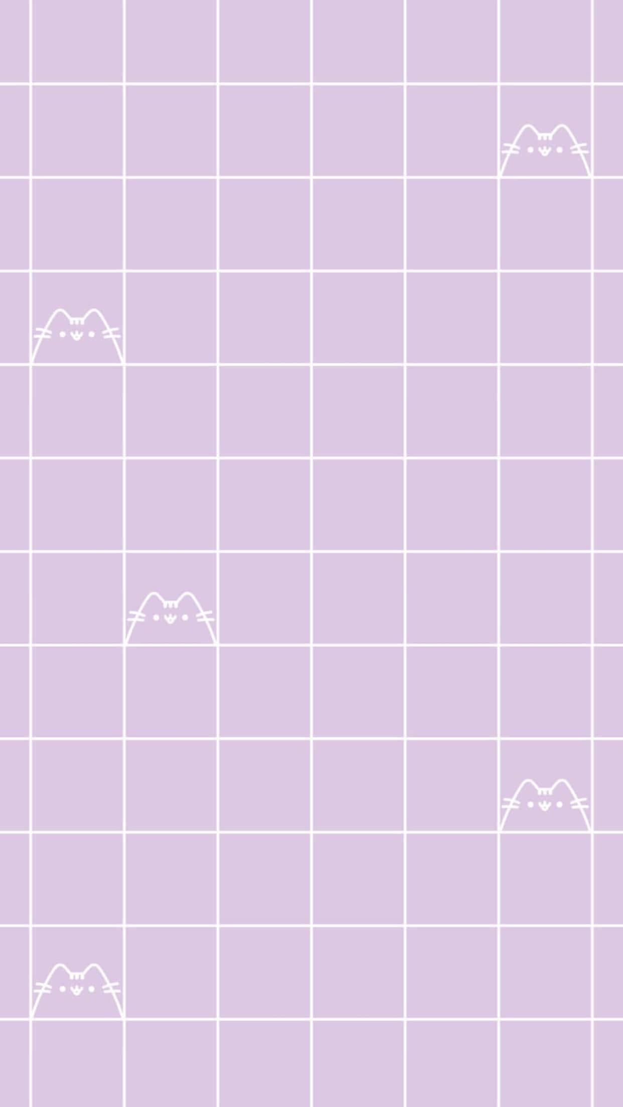 Pastel Aesthetic Grid Purple Pusheen Wallpaper -
