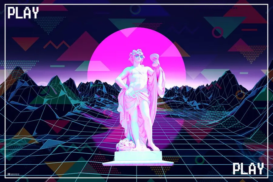 Play – A Statue In Front Of A Neon Background Wallpaper