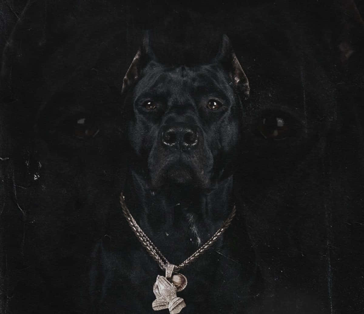 Glaring Black Pitbull With Glowing Eyes Wallpaper -
