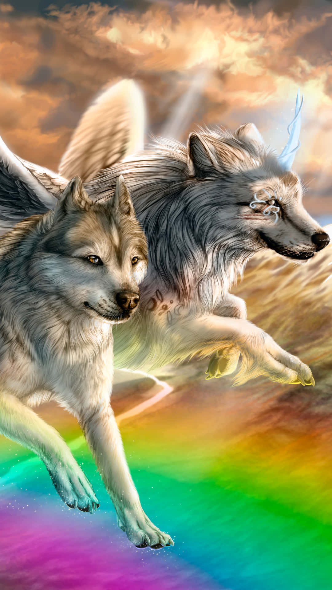 Related Rainbow Wolf Running With Another Wallpapers