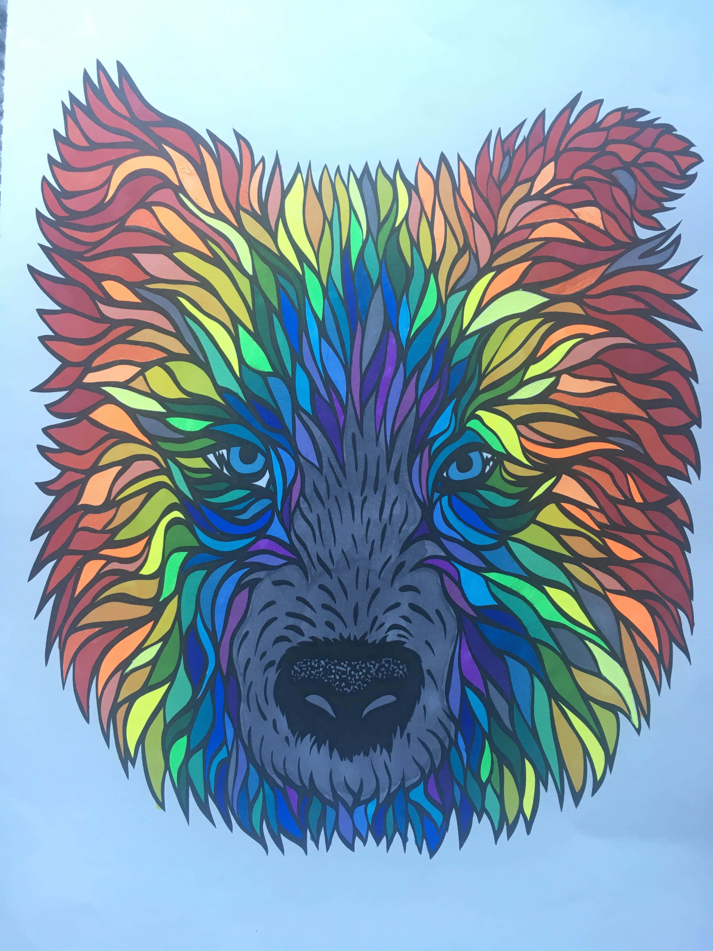Rainbow Wolf Sketch Art Wallpaper -