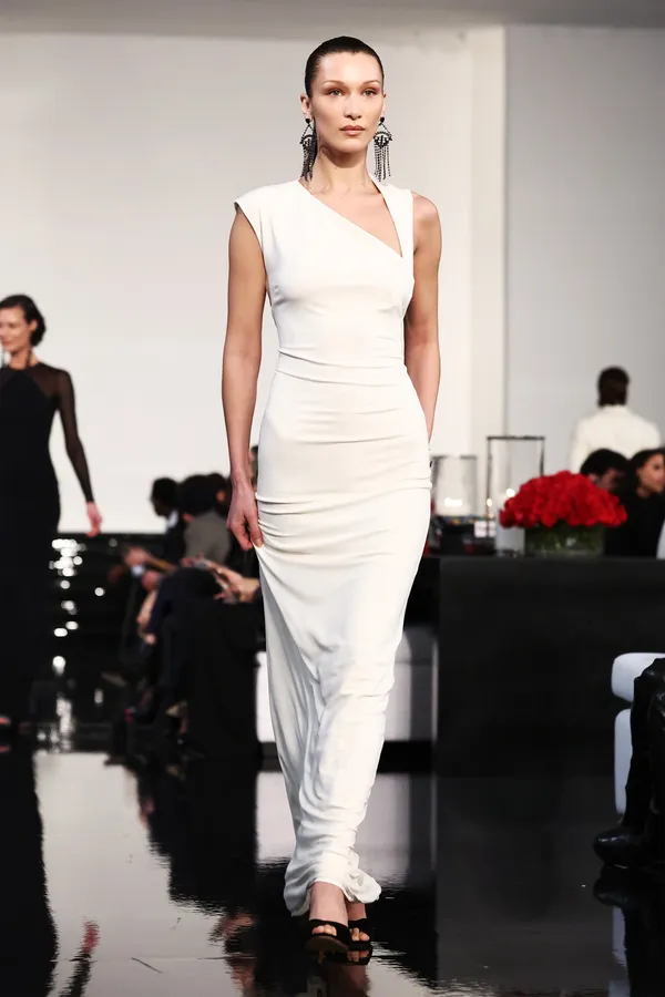 Model Showcasing Ralph Lauren White Pants Wallpaper -