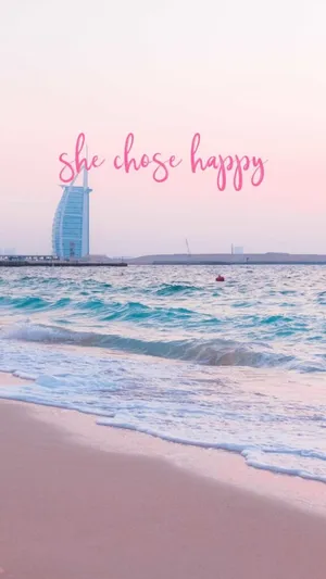 Capture The Perfect Beach Vacation With A Splash Of Pink! Wallpaper -