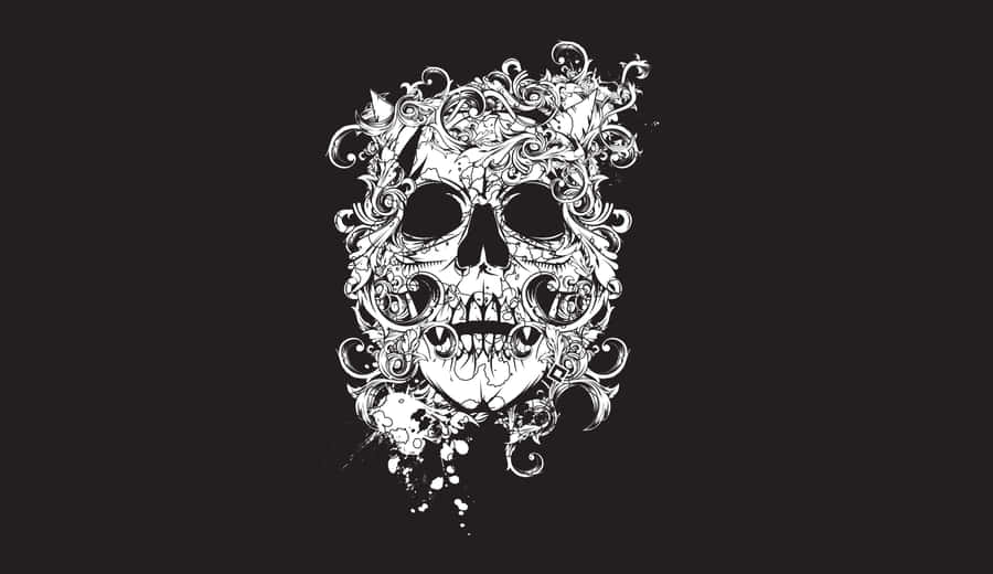 A Black And White Image Of A Skull With A Skull And A Cross Wallpaper -