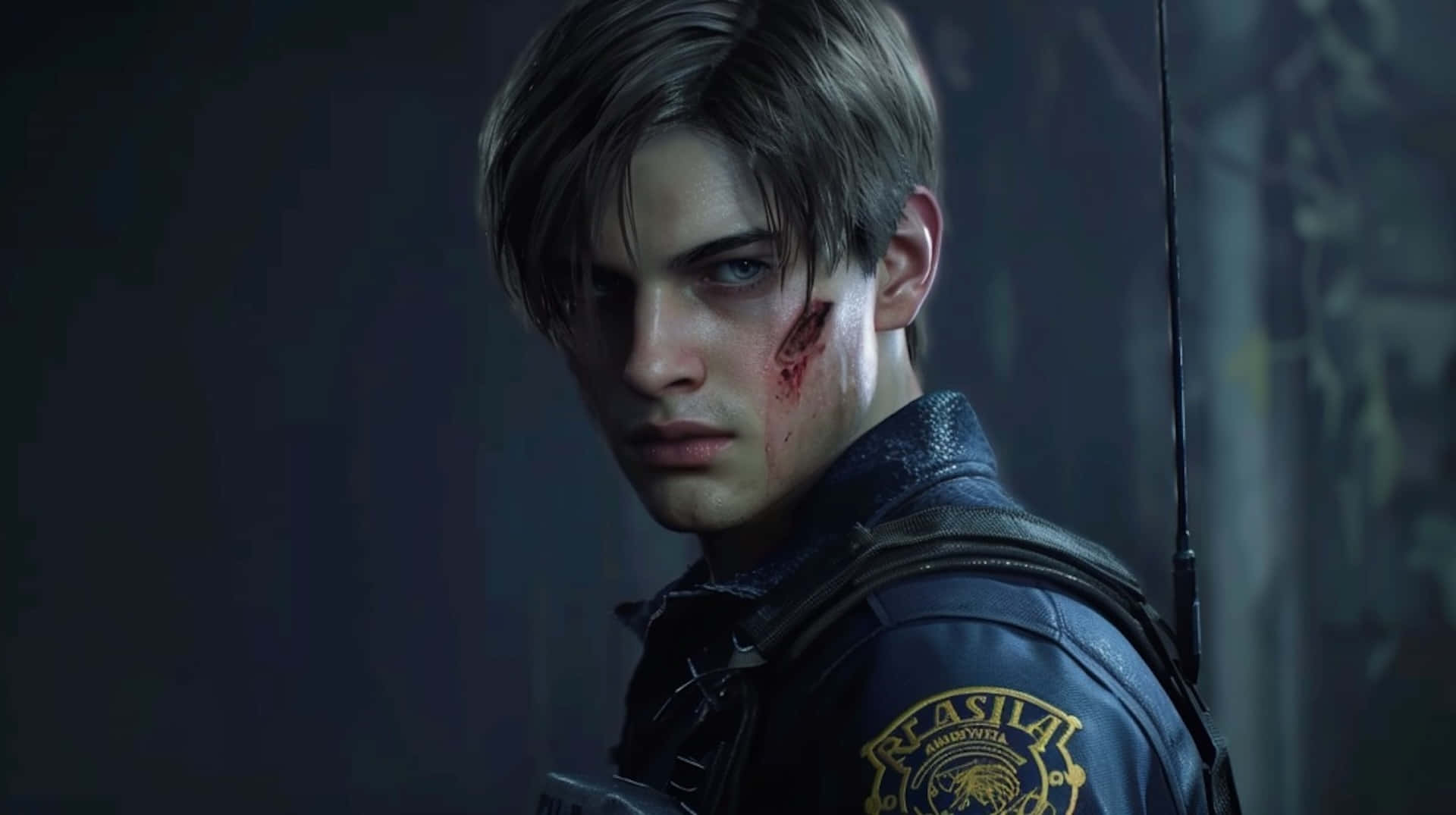 Resident Evil2 Remake Leon Serious Gaze Wallpaper -