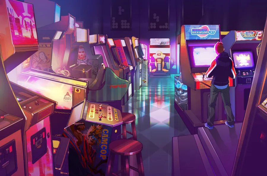 Retro Video Game Arcade House 80s Aesthetic Digital Art Wallpaper