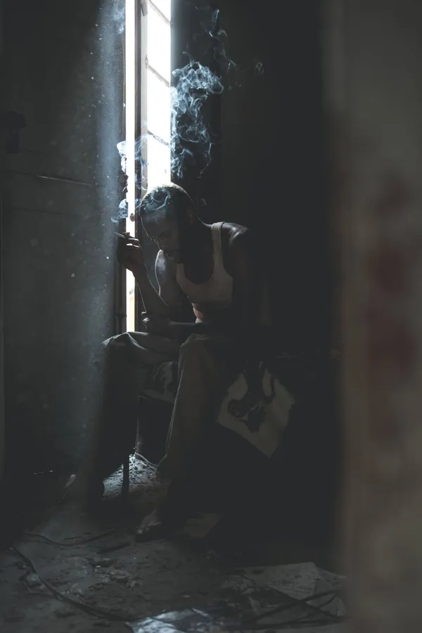 Sad Vibes Man Smoking Abandoned Place -