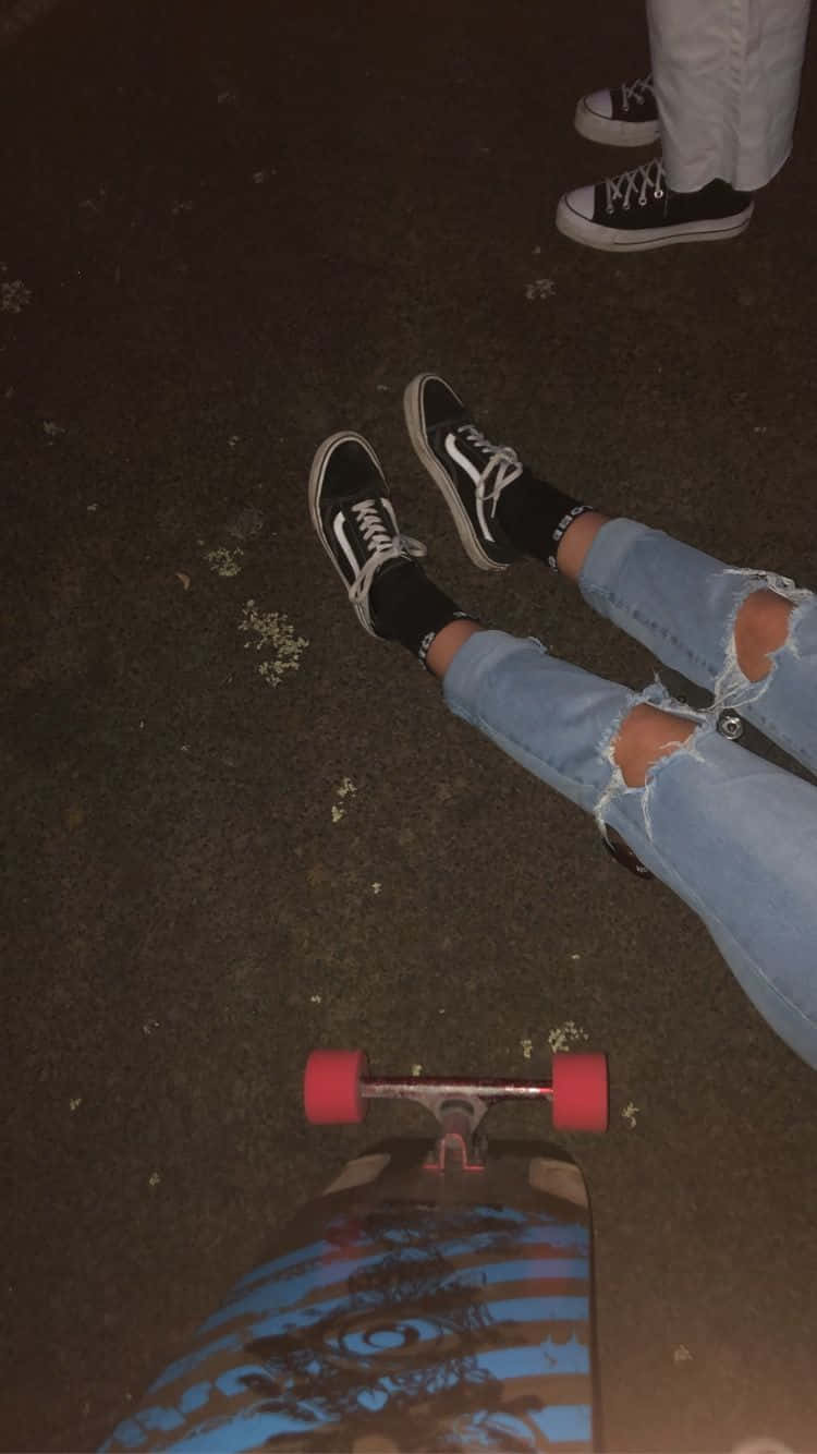 Skater Girl Aesthetic Ripped Jeans Mobile Wallpaper -