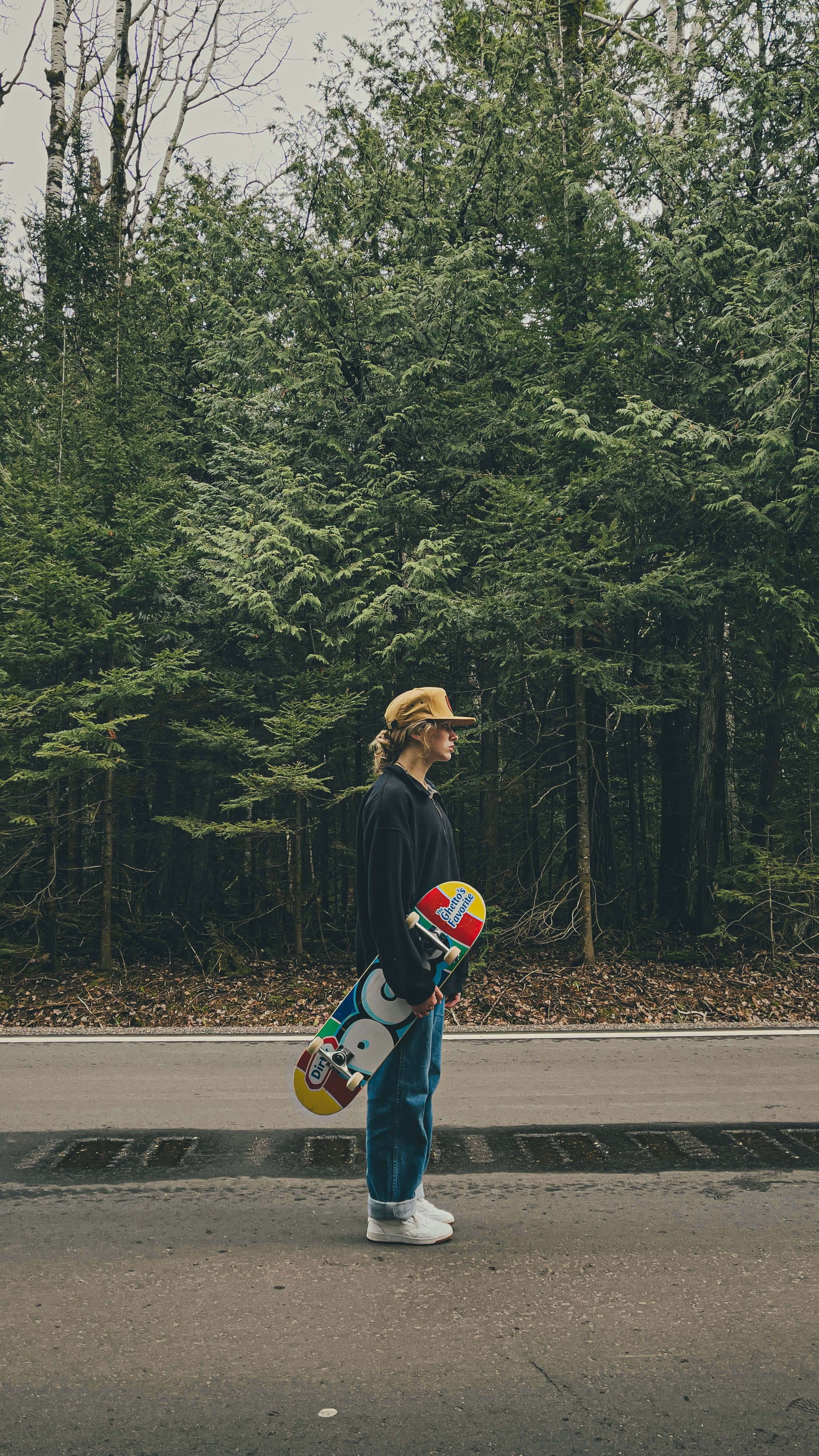 Skater Girl Aesthetic Standing By The Forest Wallpaper -