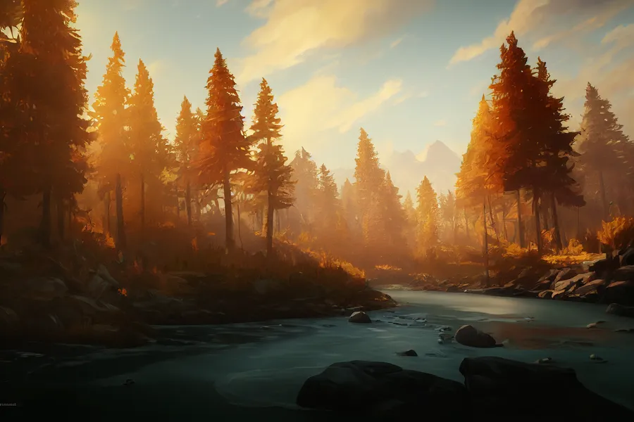 Skyrim Landscape River And Trees Wallpaper