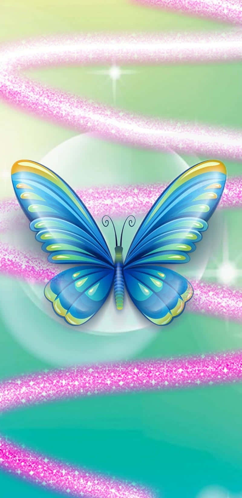 A Bright And Vibrant Glitter Butterfly Wallpaper -