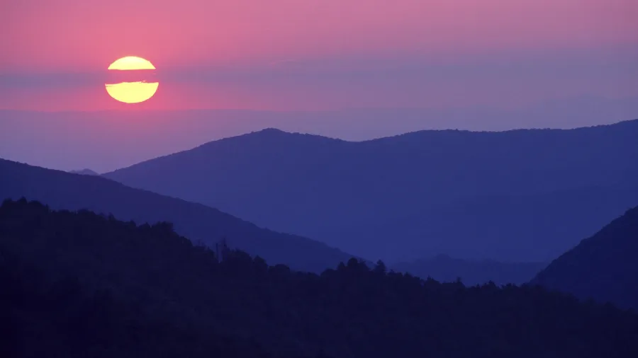 Blue And Purple Sunset With A Red Sun Wallpaper -