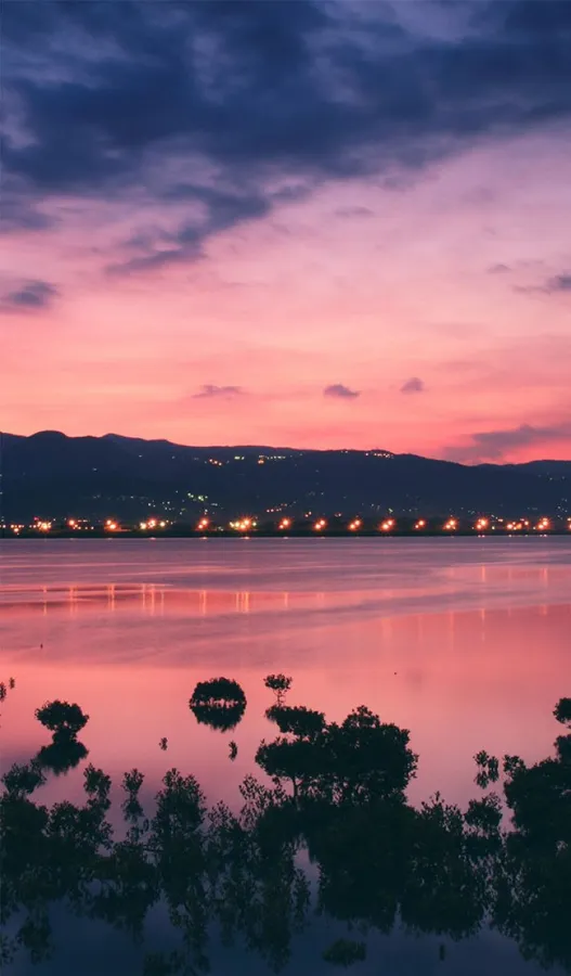 A Pink Sunset Over The Water Wallpaper -