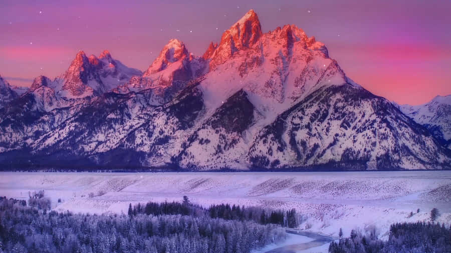 Enjoy A Serene Landscape Of Snow-capped Mountains Wallpaper -