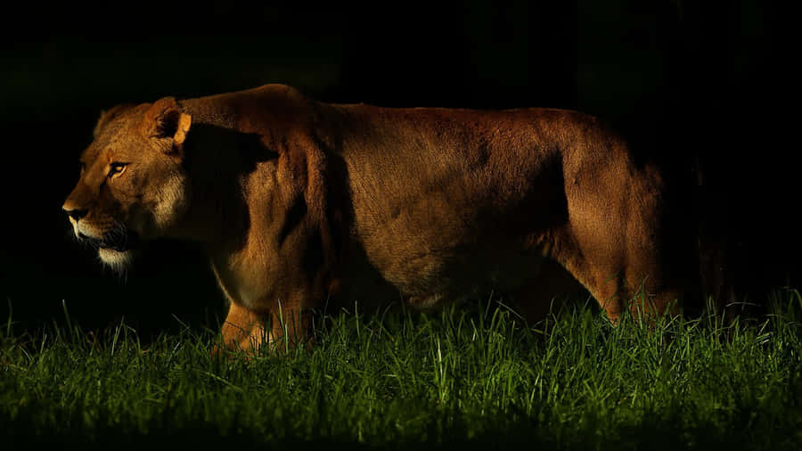 A Lion Is Sitting In A Tree In The Dark Wallpaper