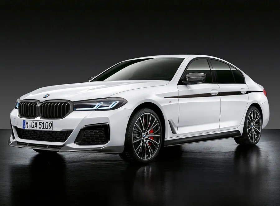 The 2020 Bmw 5 Series Sedan Is Driving Down The Street Wallpaper -