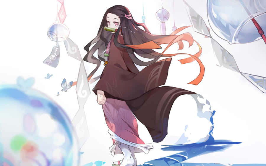 Nezuko Kamado From Demon Slayer Showing Off Her Cool Side. Wallpaper -