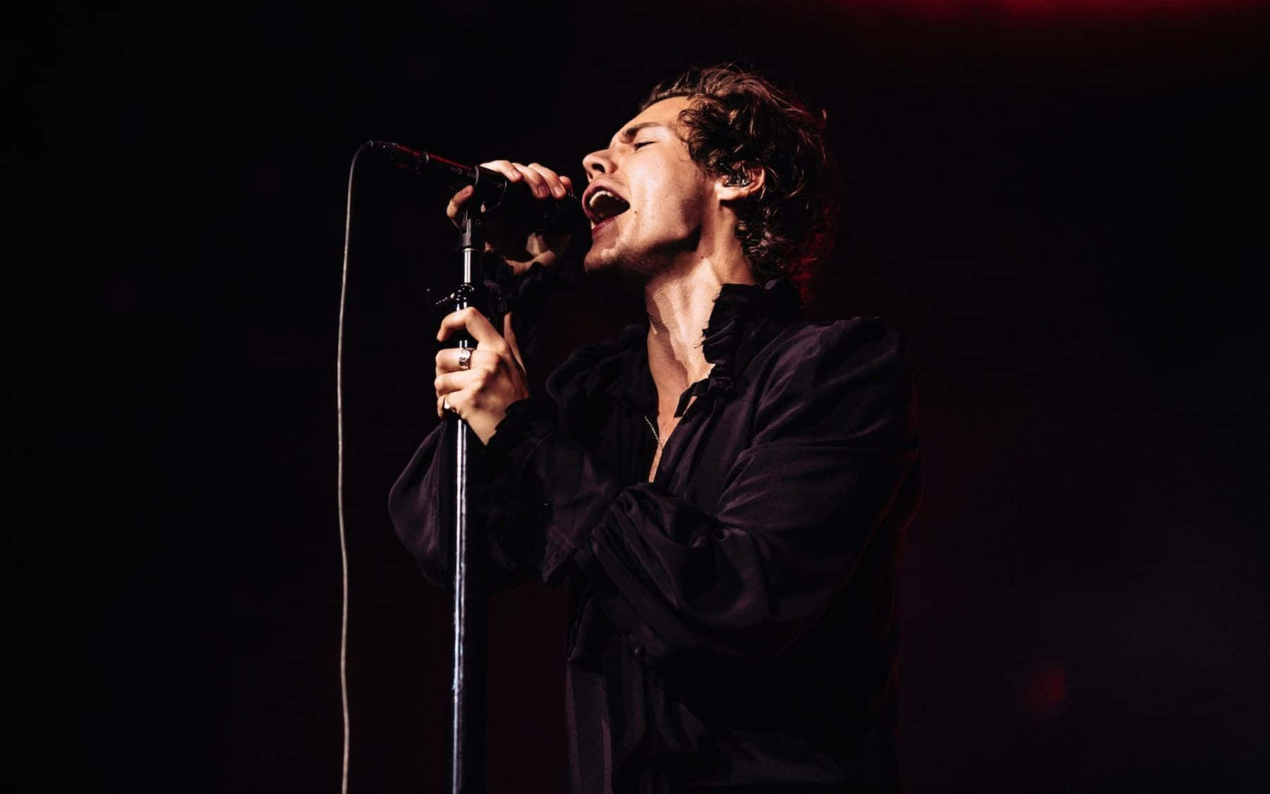 Singing Harry Styles Black And White Wallpaper -