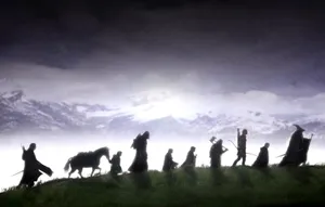 “the Fellowship Setting Off On An Epic Journey” Wallpaper -