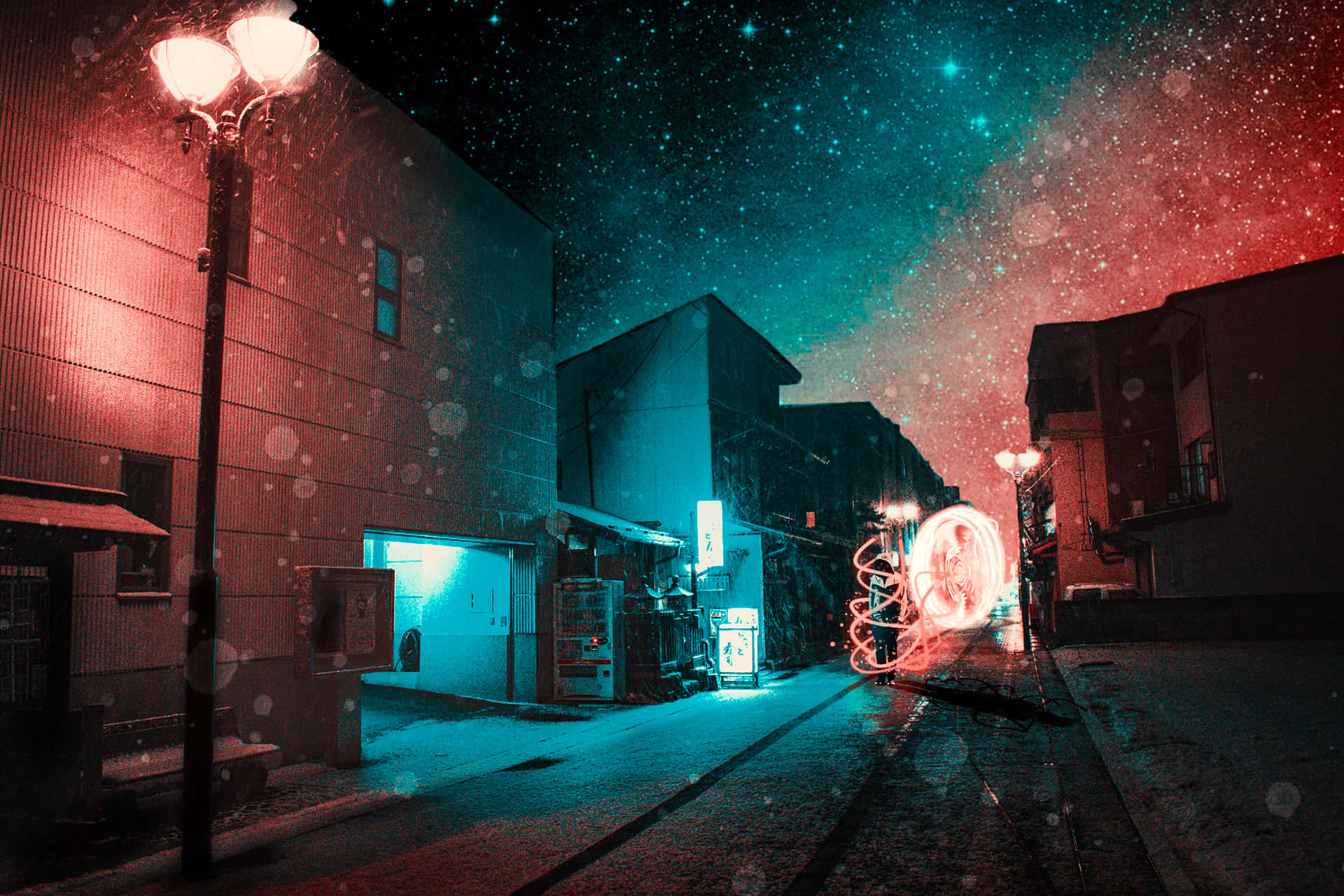 The Lights Of The City Illuminate The Dark Streets Of Japan Wallpaper -