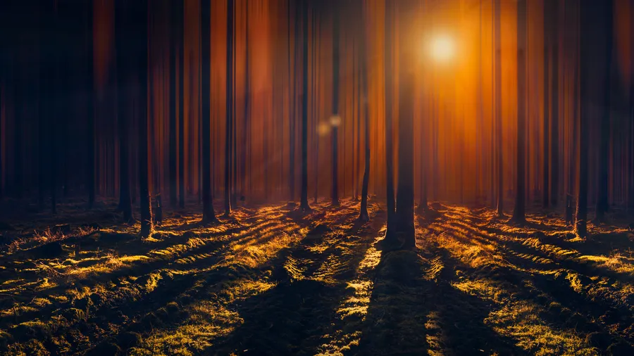 Towering Trees With Sun Rays Wallpaper
