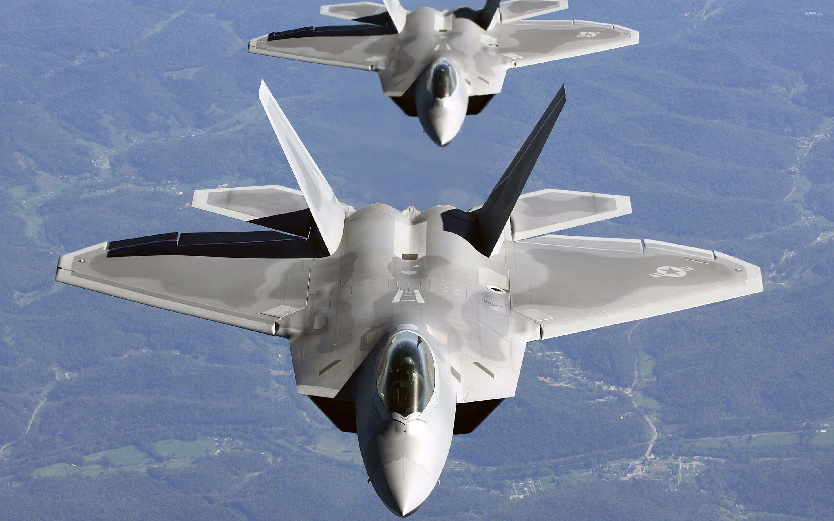 Two Fighter Jets Flying In The Sky Wallpaper -