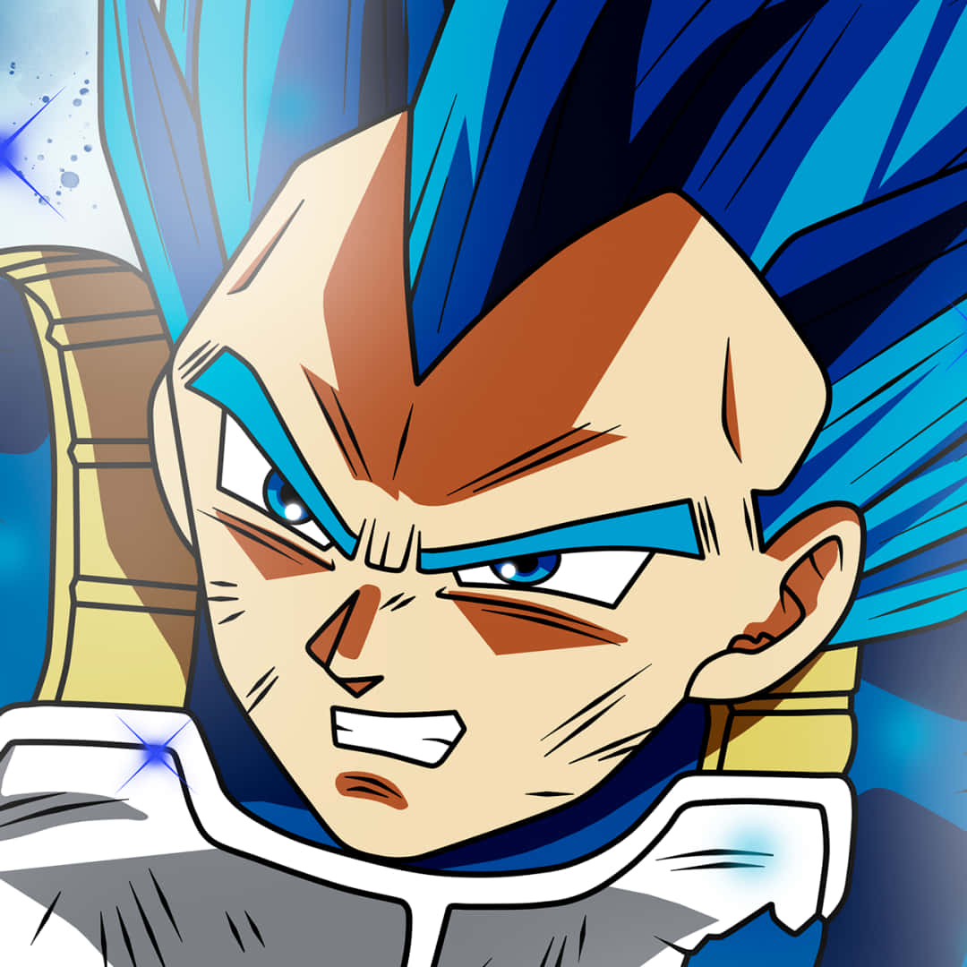 An Illustrated Portrait Of Vegeta From Dragon Ball Z In A Blue Aura Wallpaper -