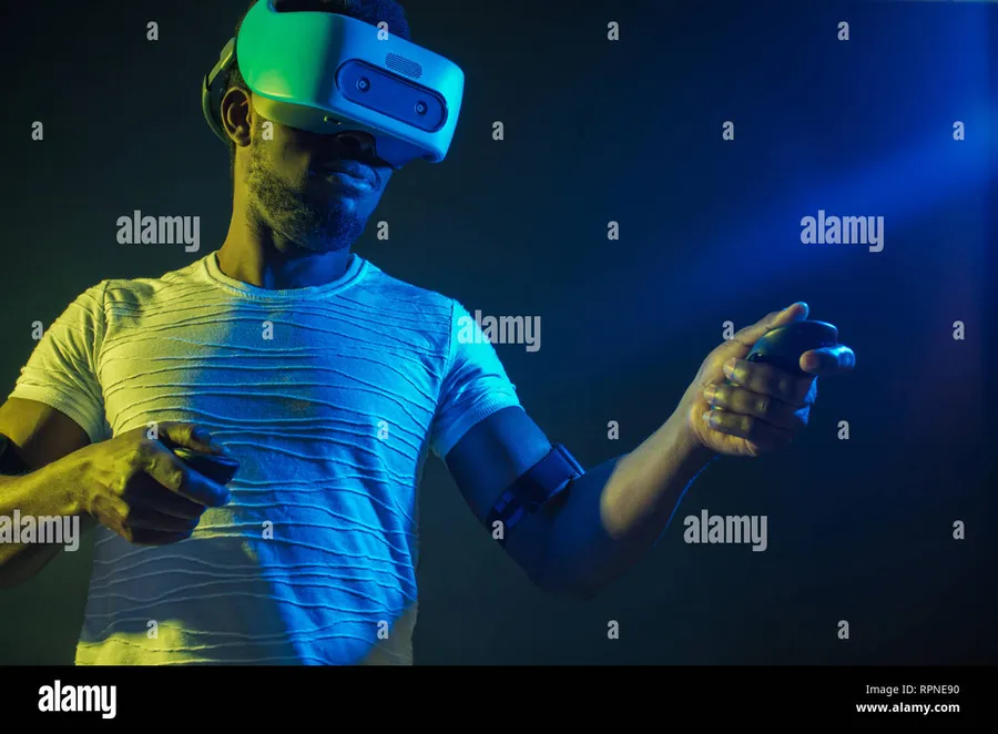A Woman Wearing A Vr Headset In Front Of Neon Lights Wallpaper -