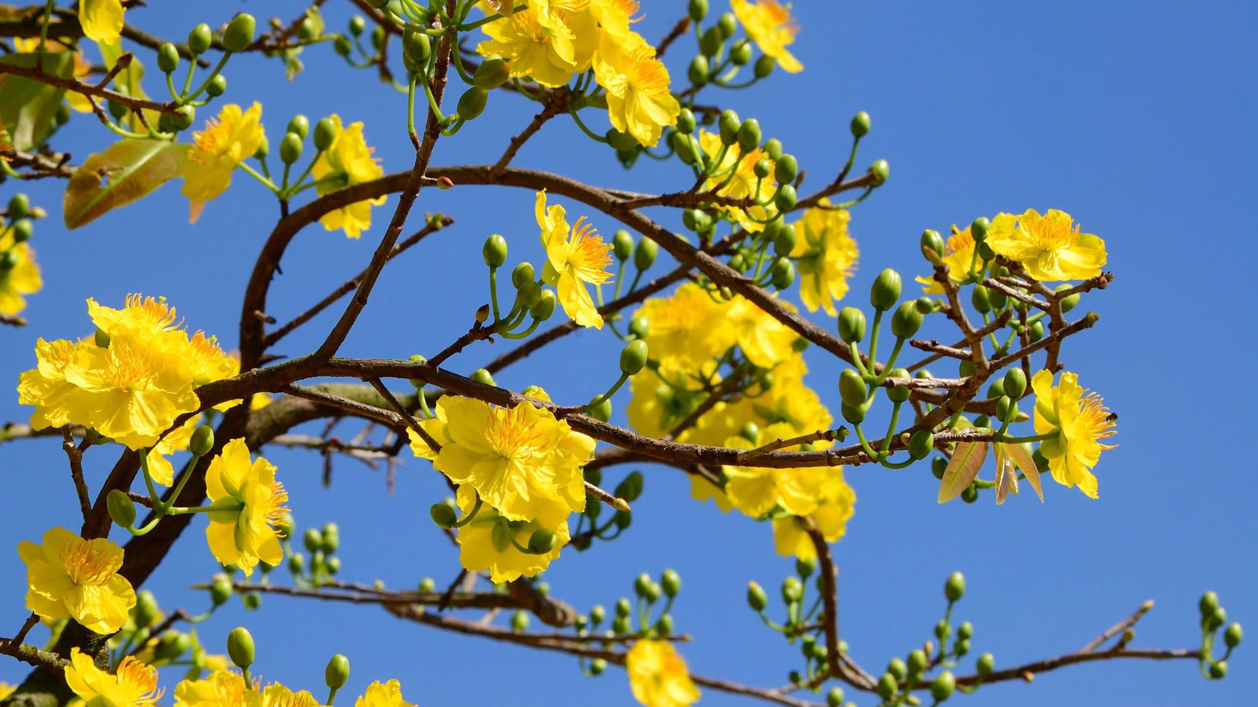 Buds And Blooms Yellow Aesthetic Flower Desktop Wallpaper -
