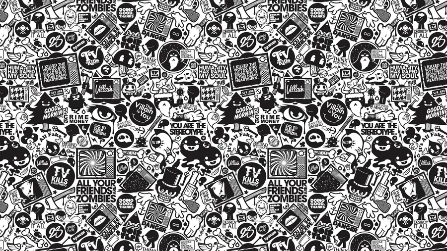 Black Retro Collage Art Wallpaper -