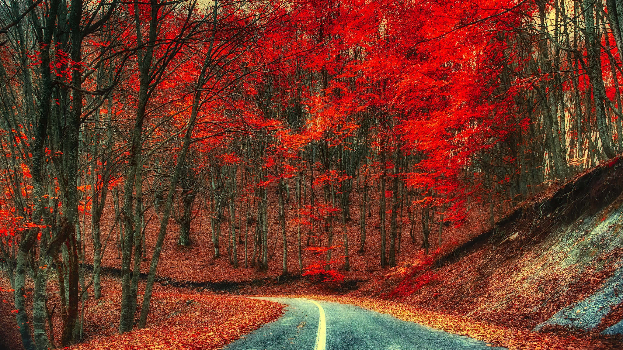 Autumn Road Foliage Scenery Wallpaper -