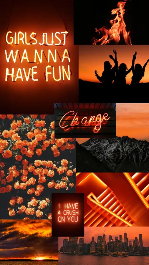 Vibrant Orange Aesthetic Collage Wallpaper -
