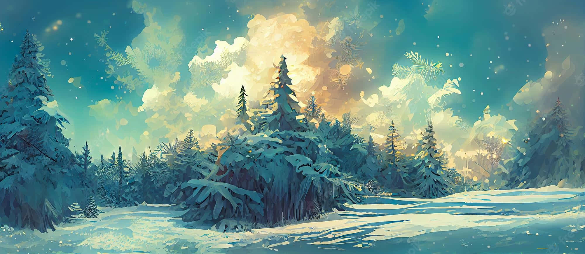 A Screenshot Of A Forest With Trees And A Sun Wallpaper -