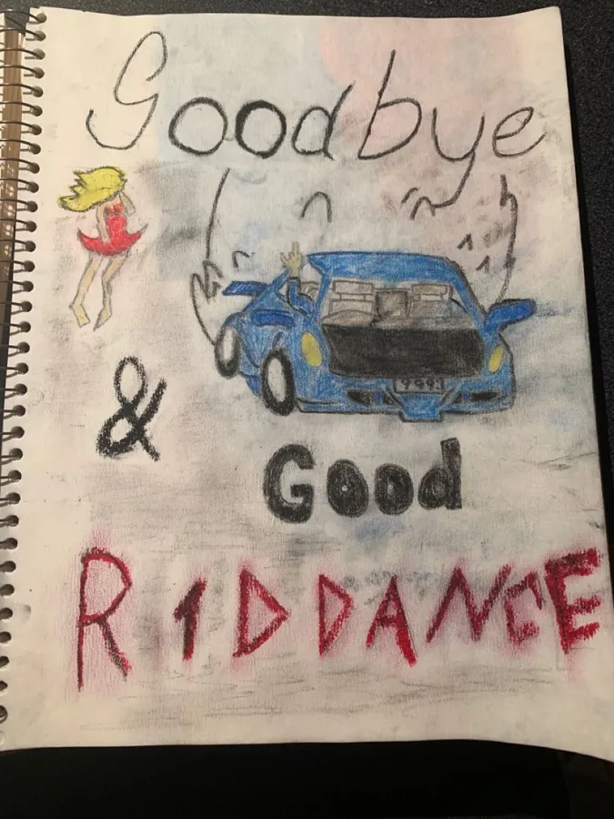A Drawing Of A Car With The Words Good Bye And Good Ridance Wallpaper -