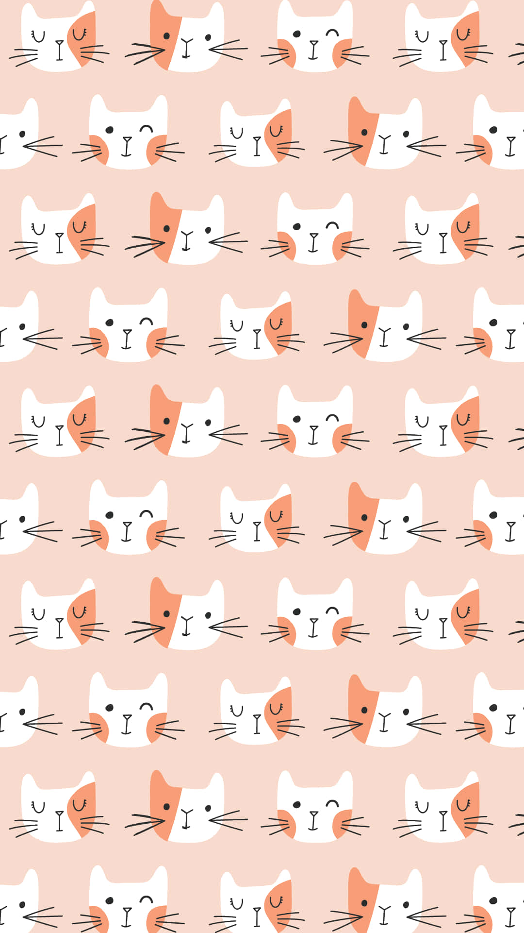 White And Orange Cute Cat Pattern Wallpaper -