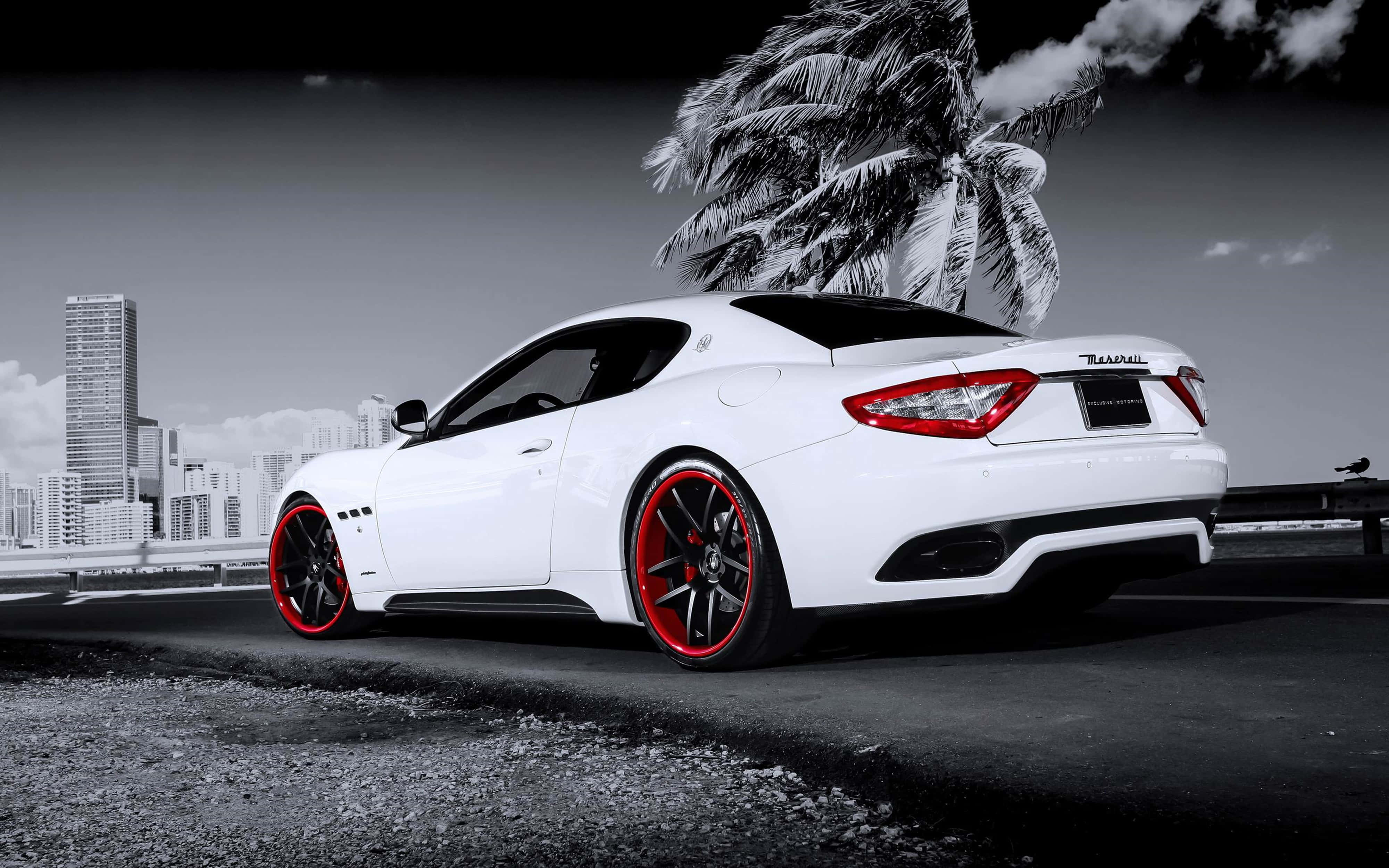 White Maserati With Red Accent 4k Wallpaper