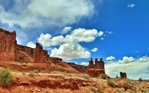 ![Chunky Clouds At Arches National Park Wallpaper]()  Chunky Clouds At Arches National Park Wallpaper
