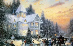 Winter Christmas Bright House Desktop Wallpaper -