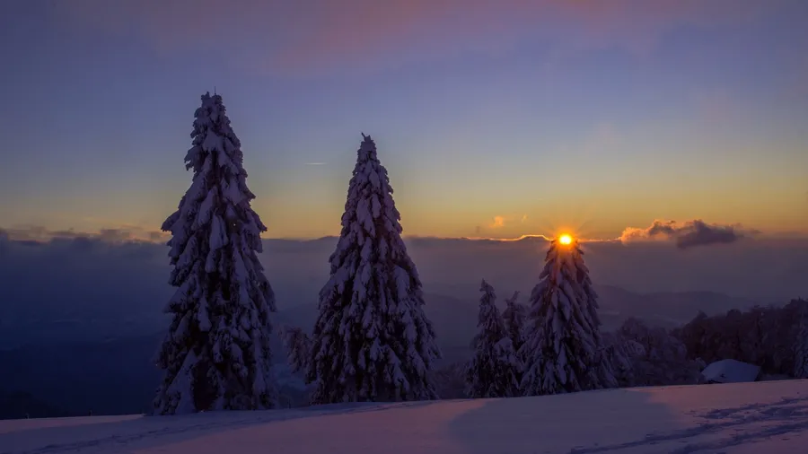 Sunset Clouds Over Winter Scenery Desktop Wallpaper -